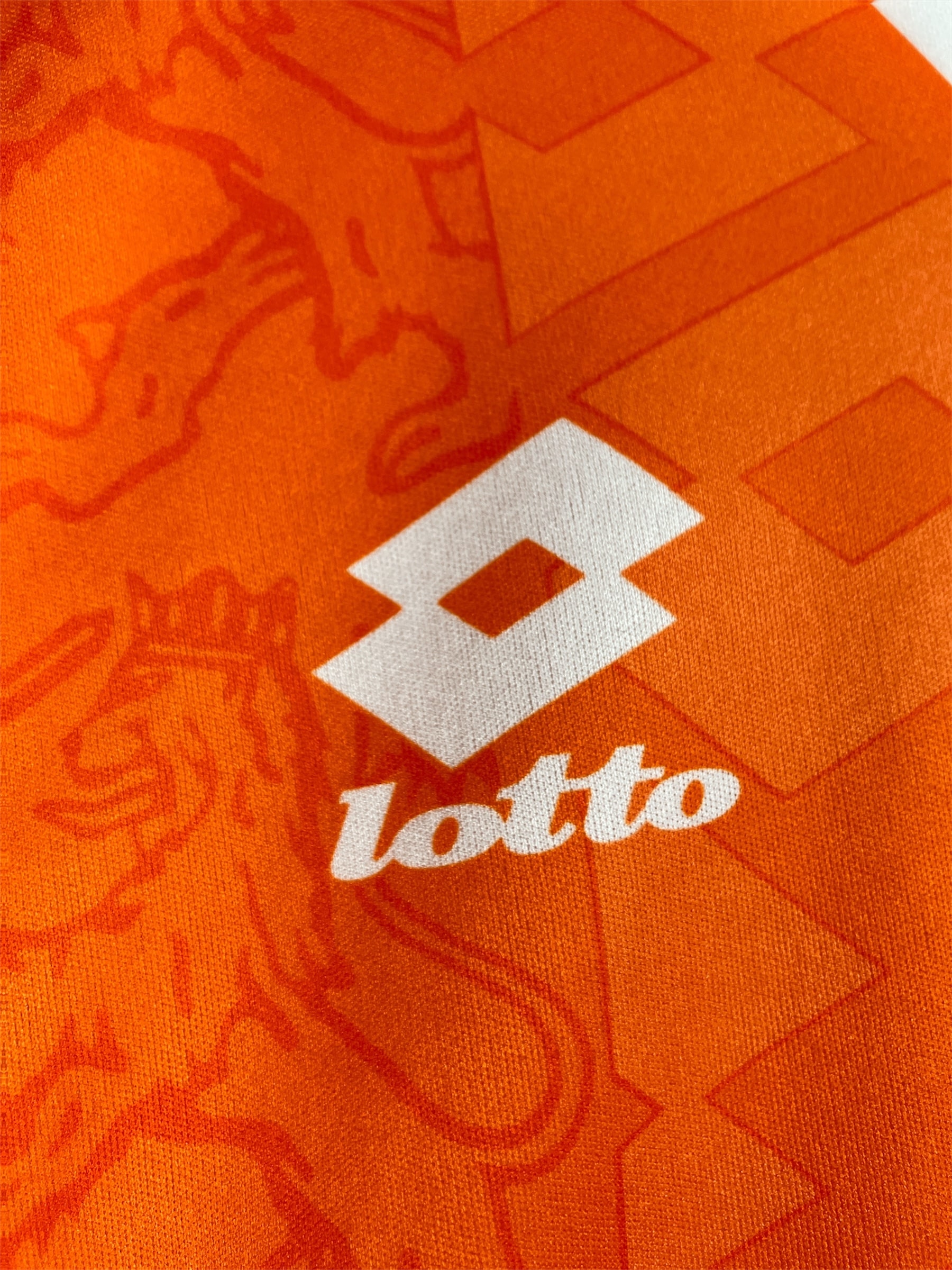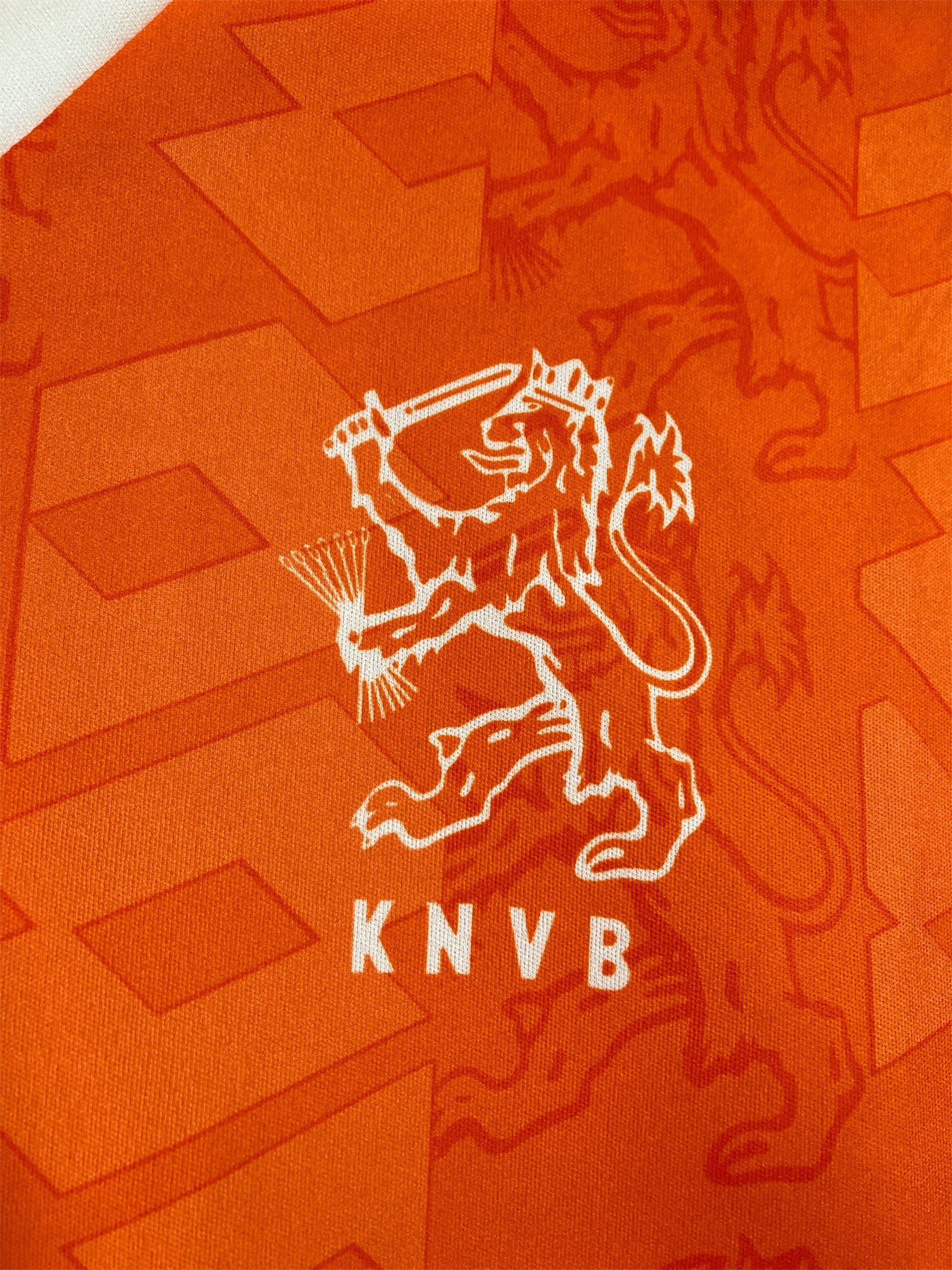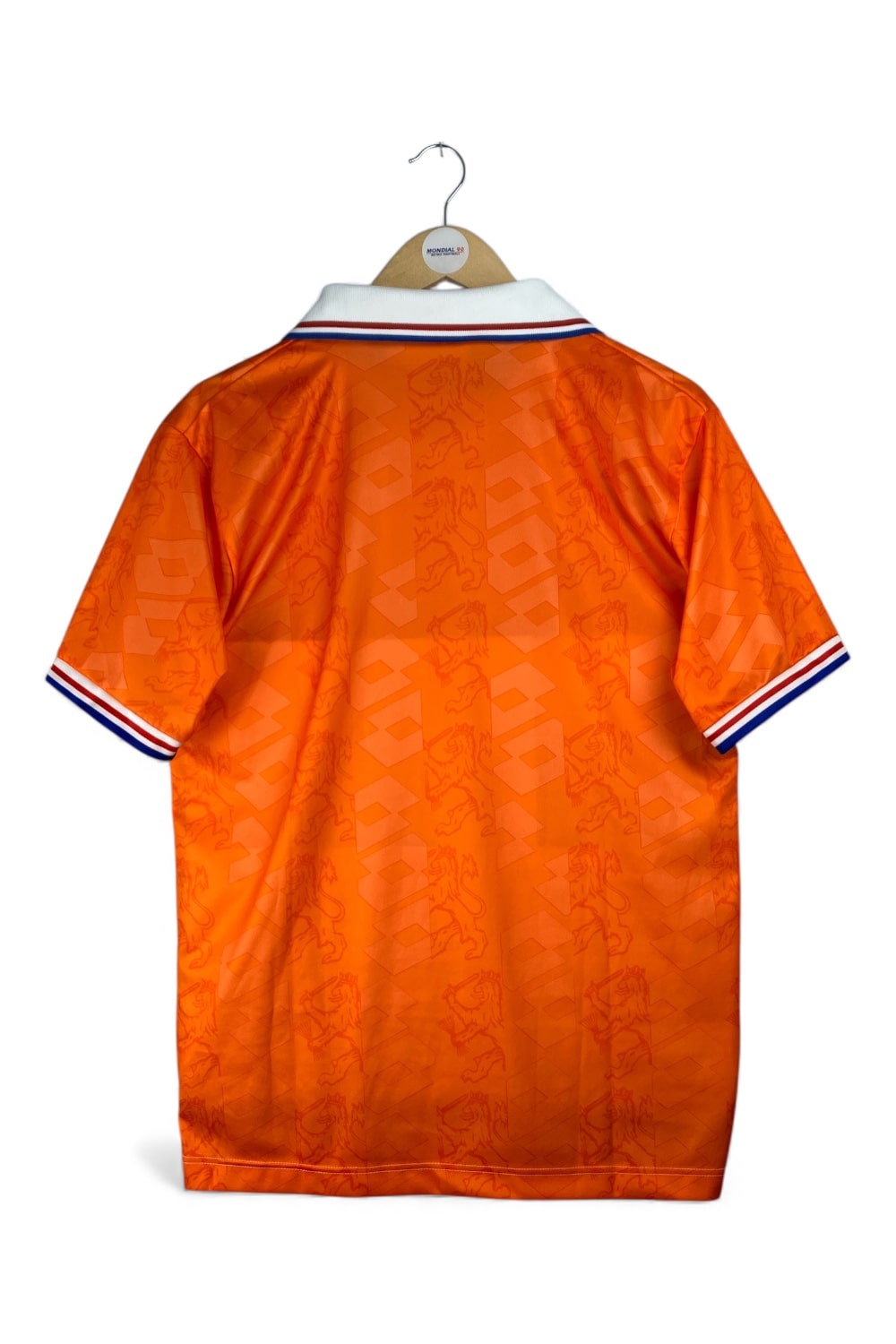 Maillot domicile des Pays-Bas utilisé lors des saisons 1993-94 et 1994-95, notamment lors de le la Coupe du monde 94 aux USA. Un match sera également joué avec ce kit en 1996 (24/04/96 contre l’Allemagne).