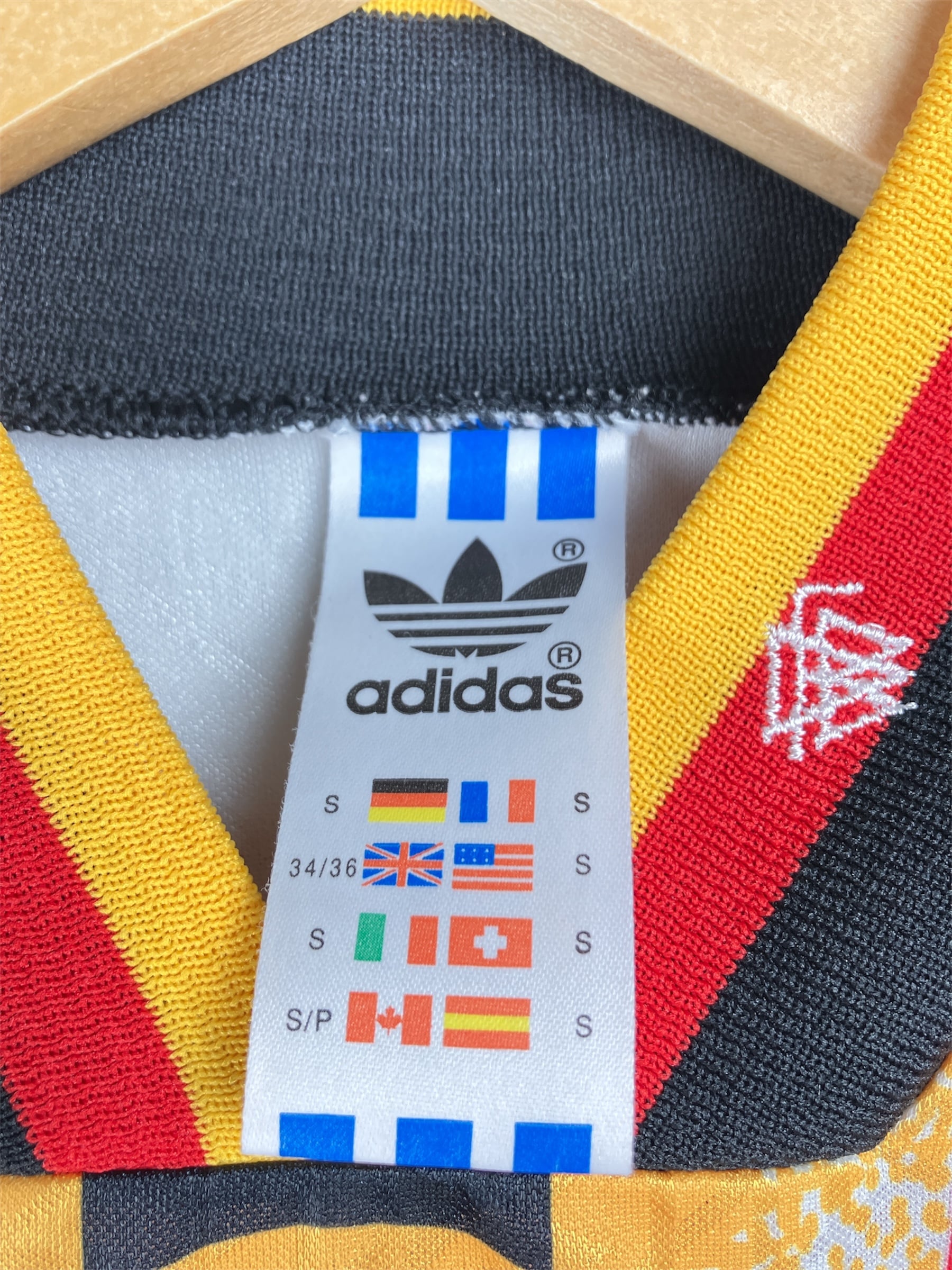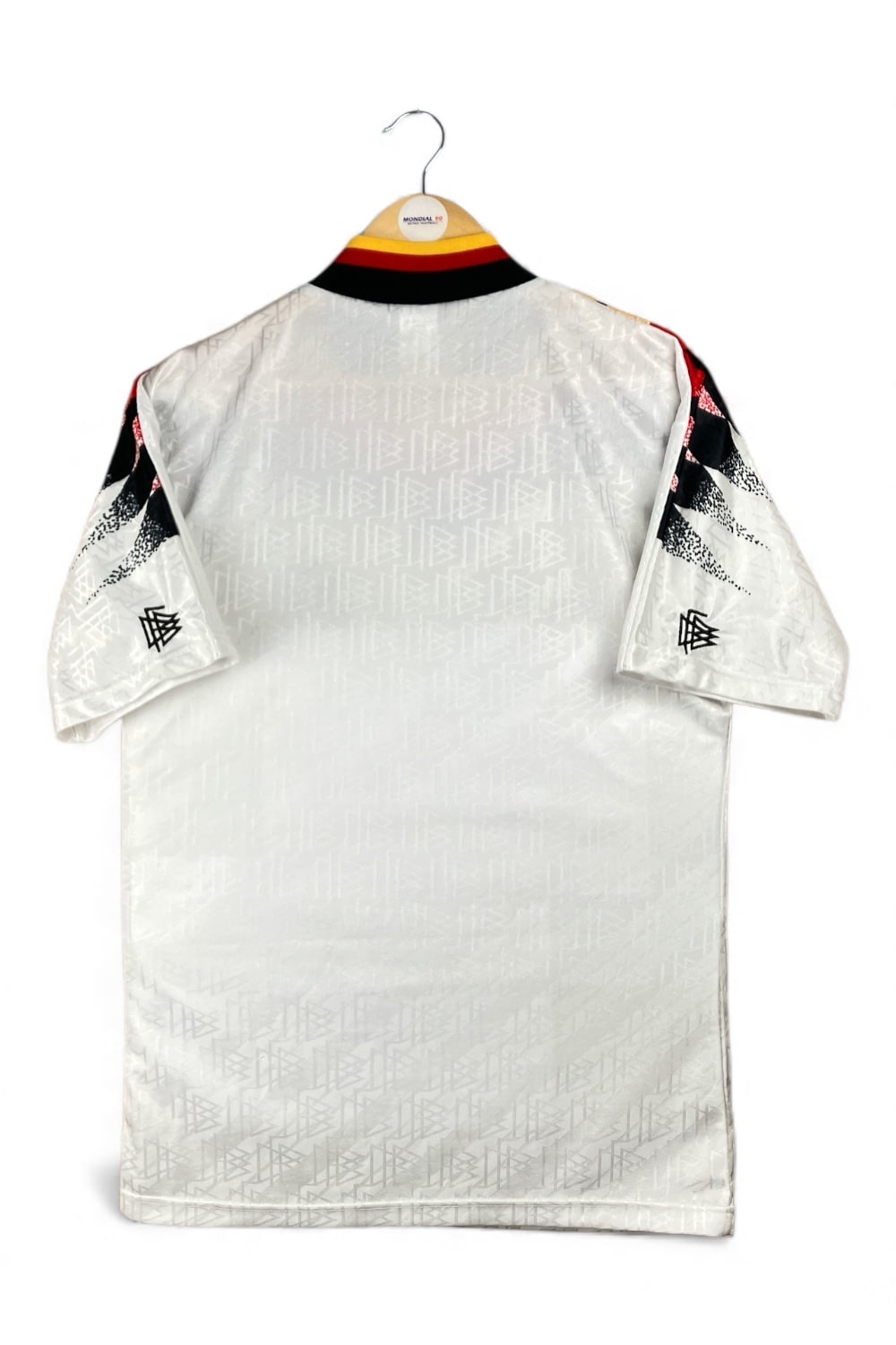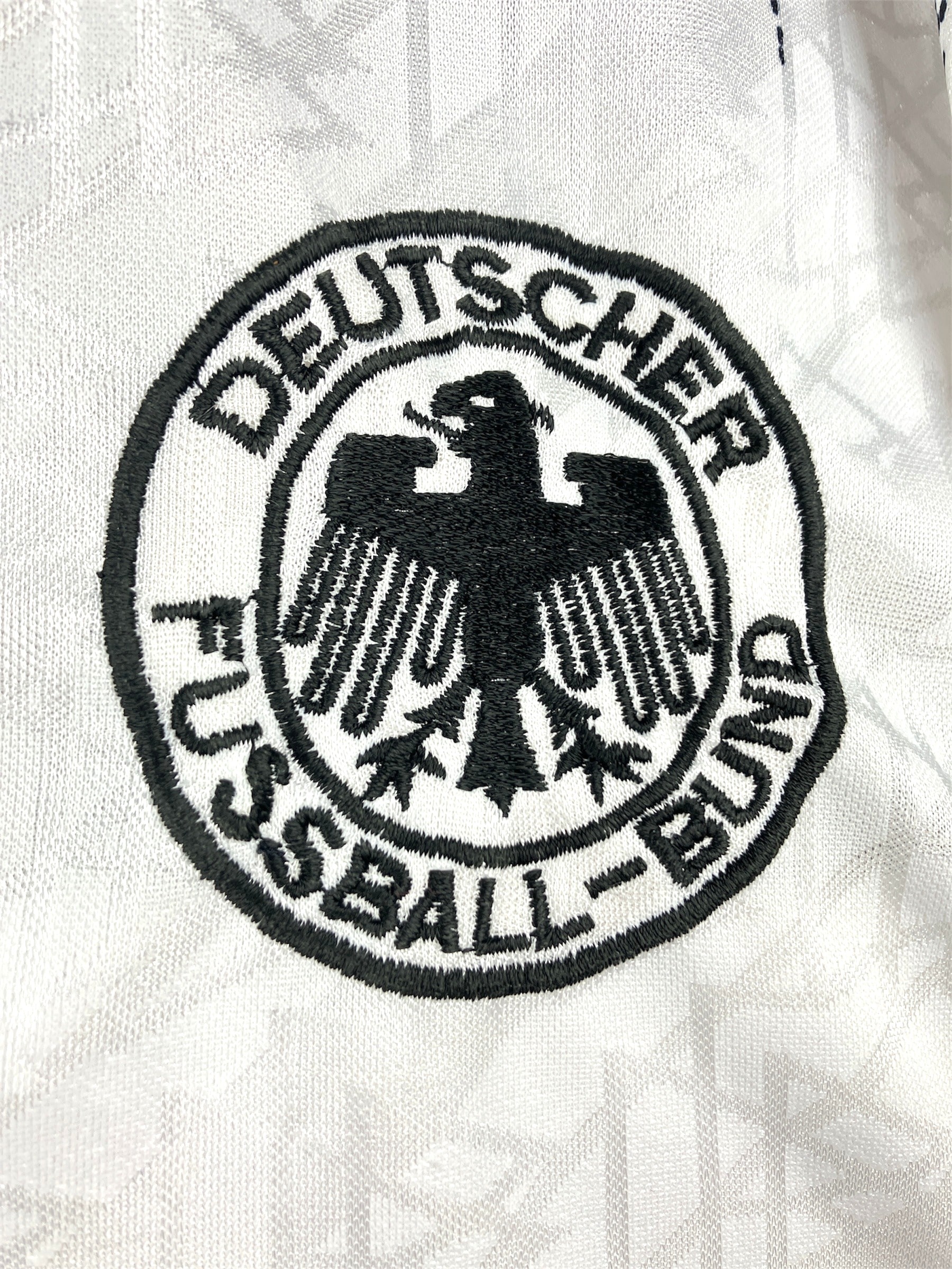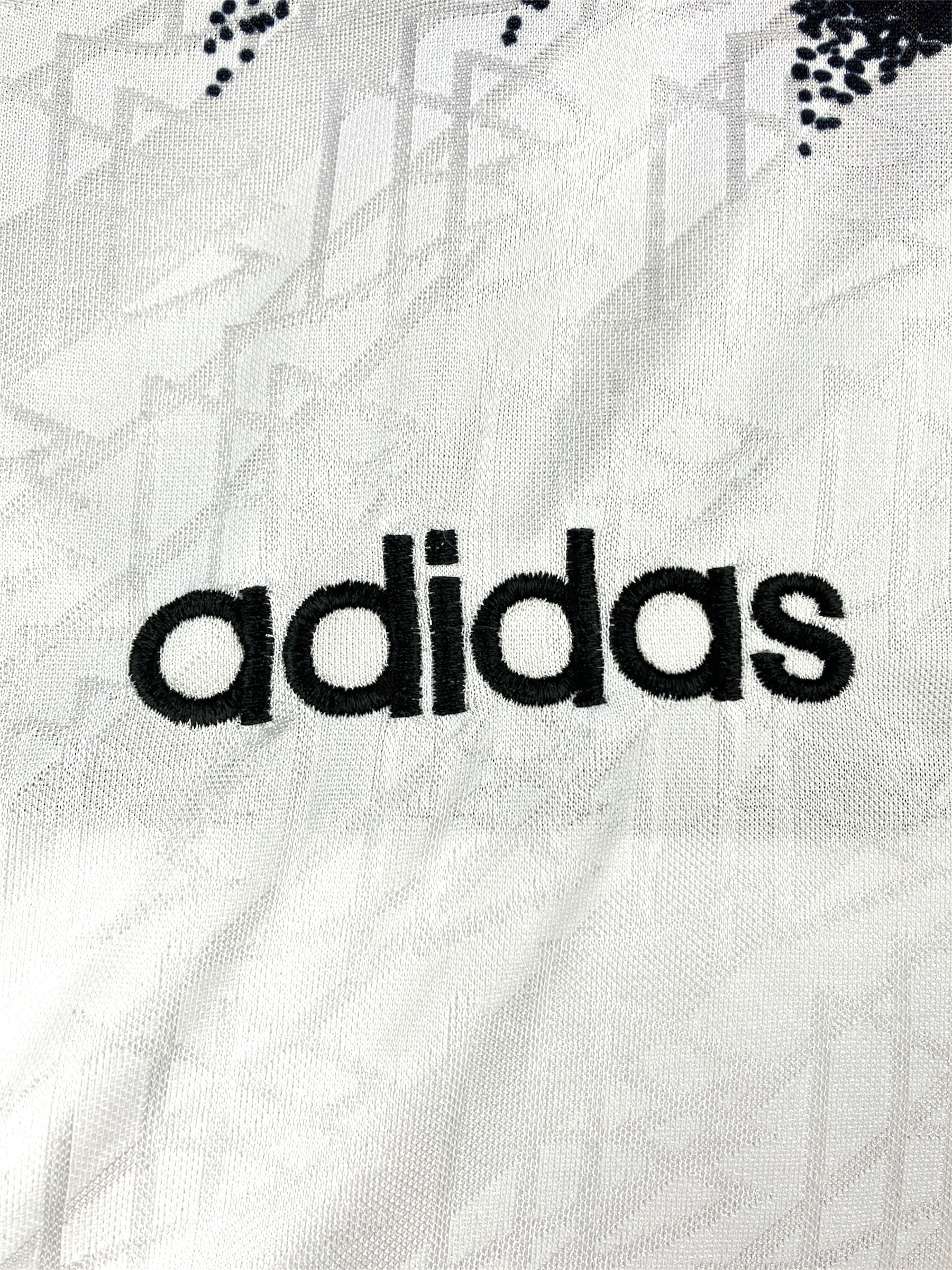 Maillot domicile de l’Allemagne utilisé lors des saisons 1994-95 et 1995-96. Première apparition lors d’Allemagne-Italie (2-1, amical) le 23/03/1994 à Stuttgart.