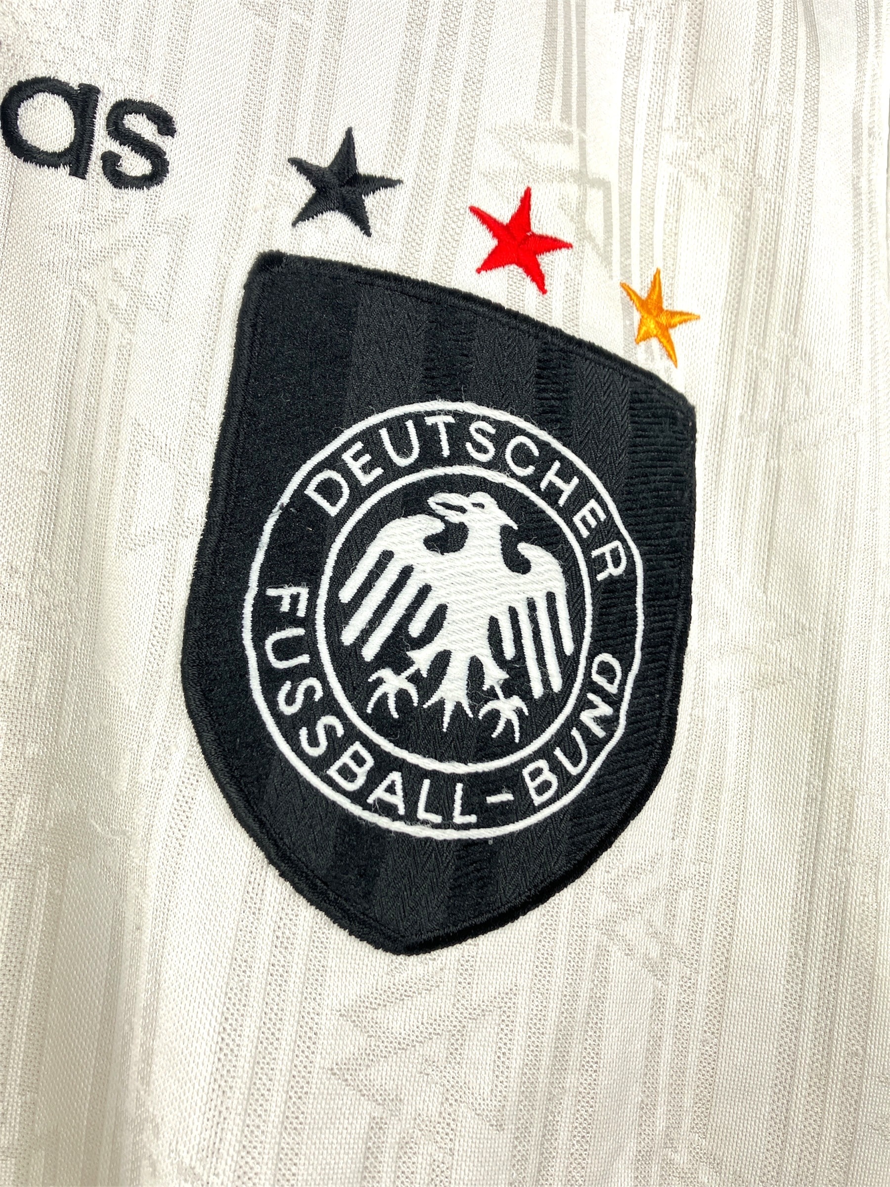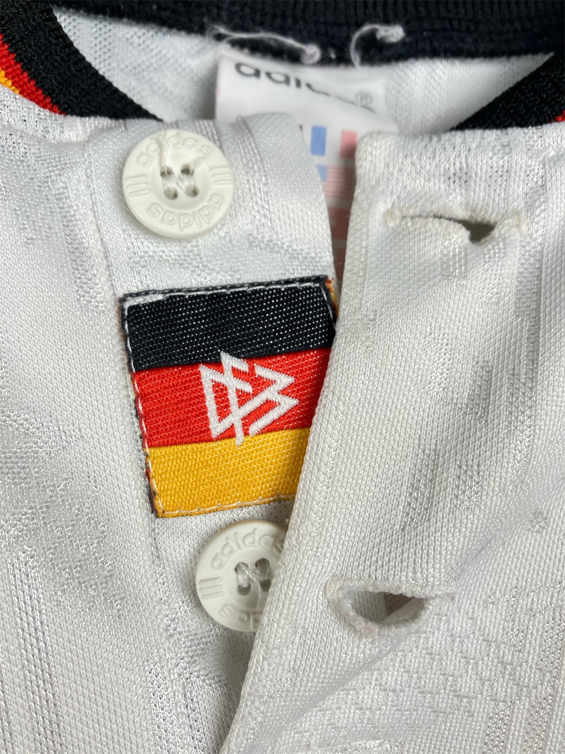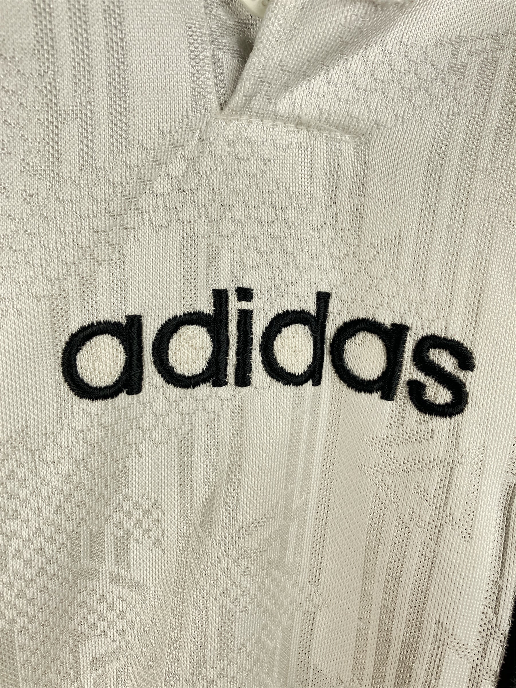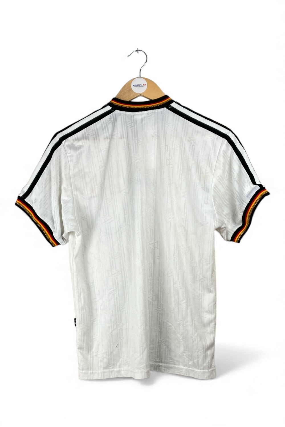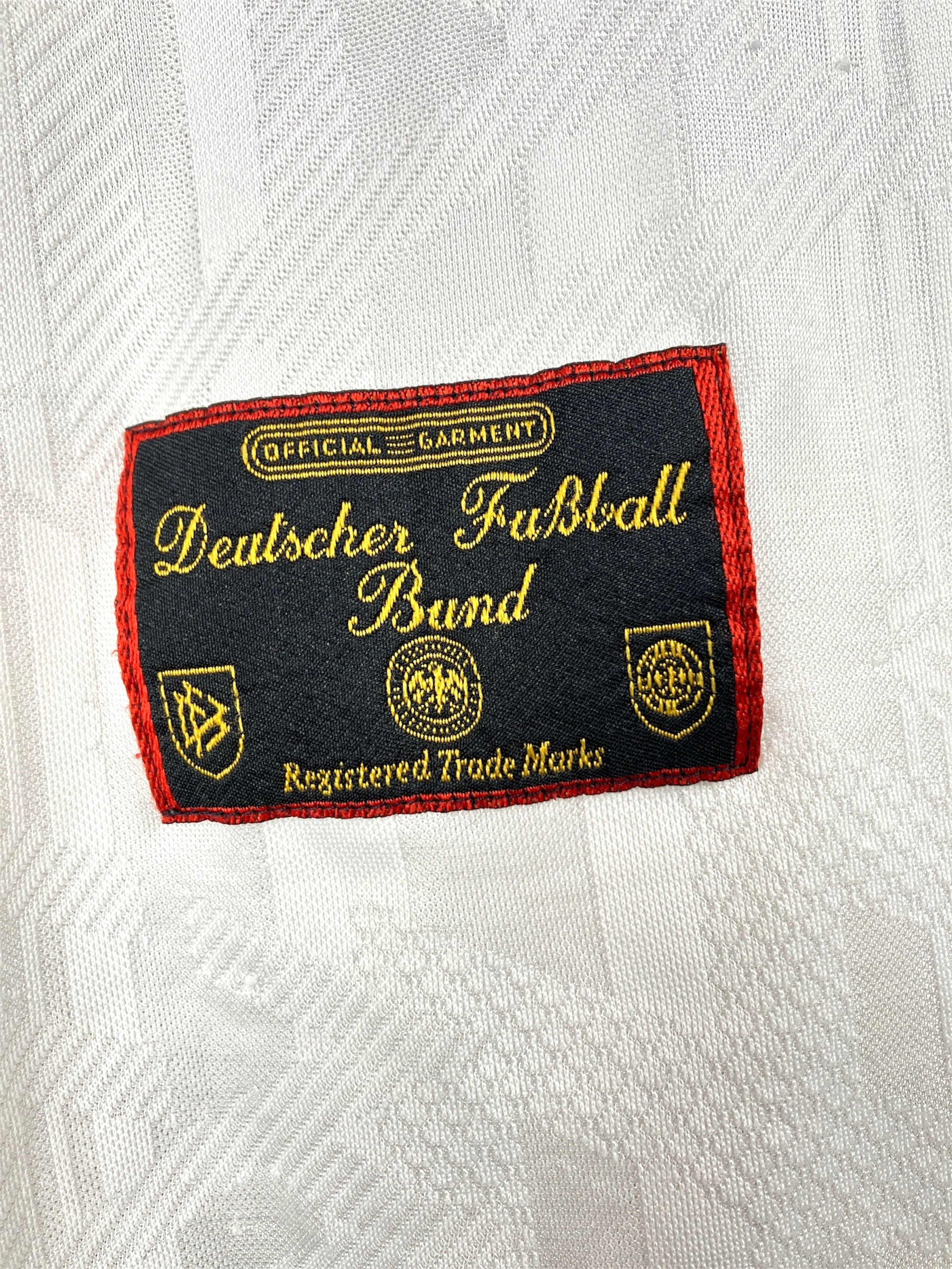 Maillot domicile de l’Allemagne utilisé lors de la saison 1996-97, notamment durant l’Euro 96 en Angleterre qu’elle remportera face à la République Tchèque. Première apparition lors d’Allemagne-Danemark (2-0, amical) le 27/03/1996 à Munich.