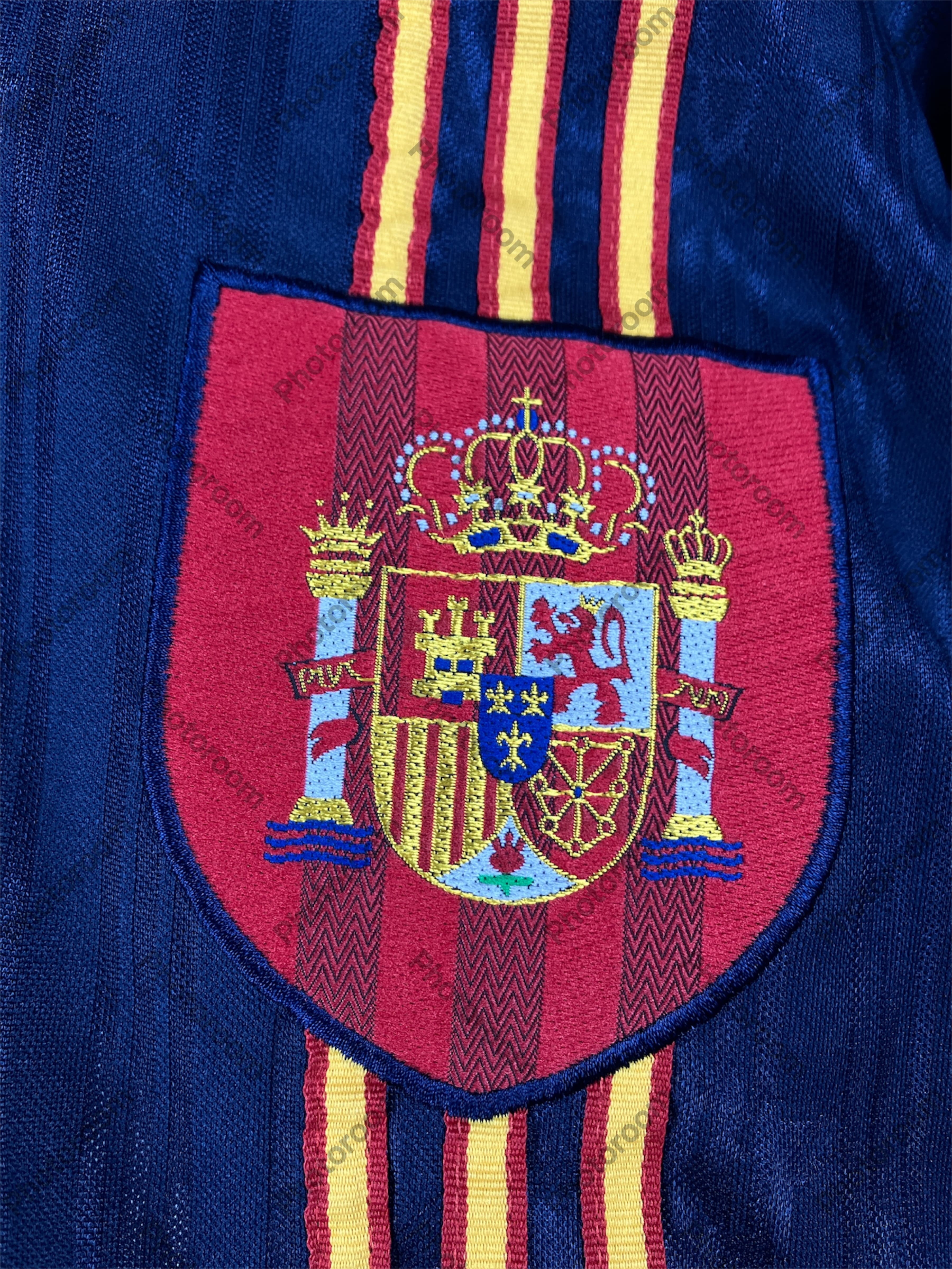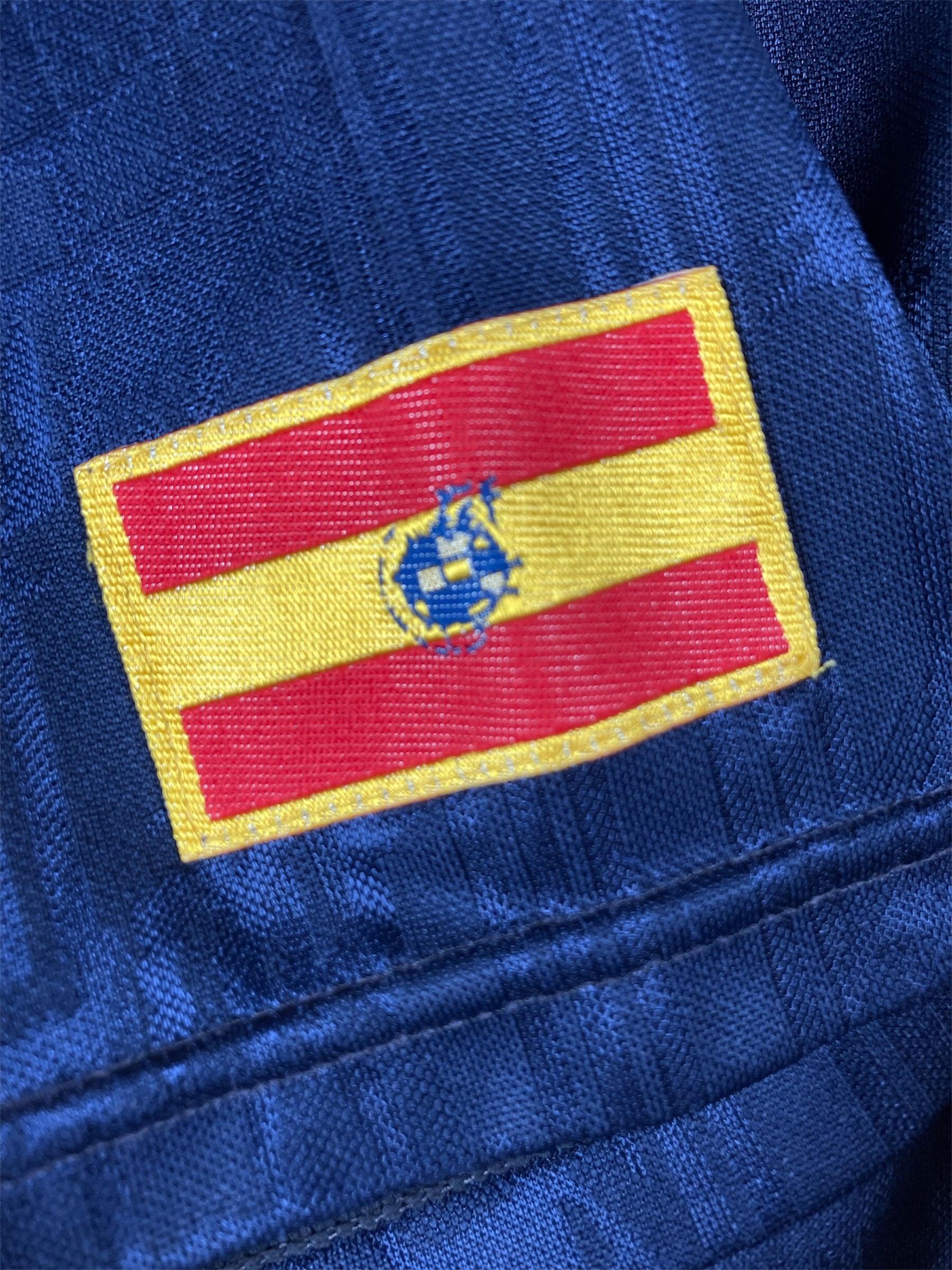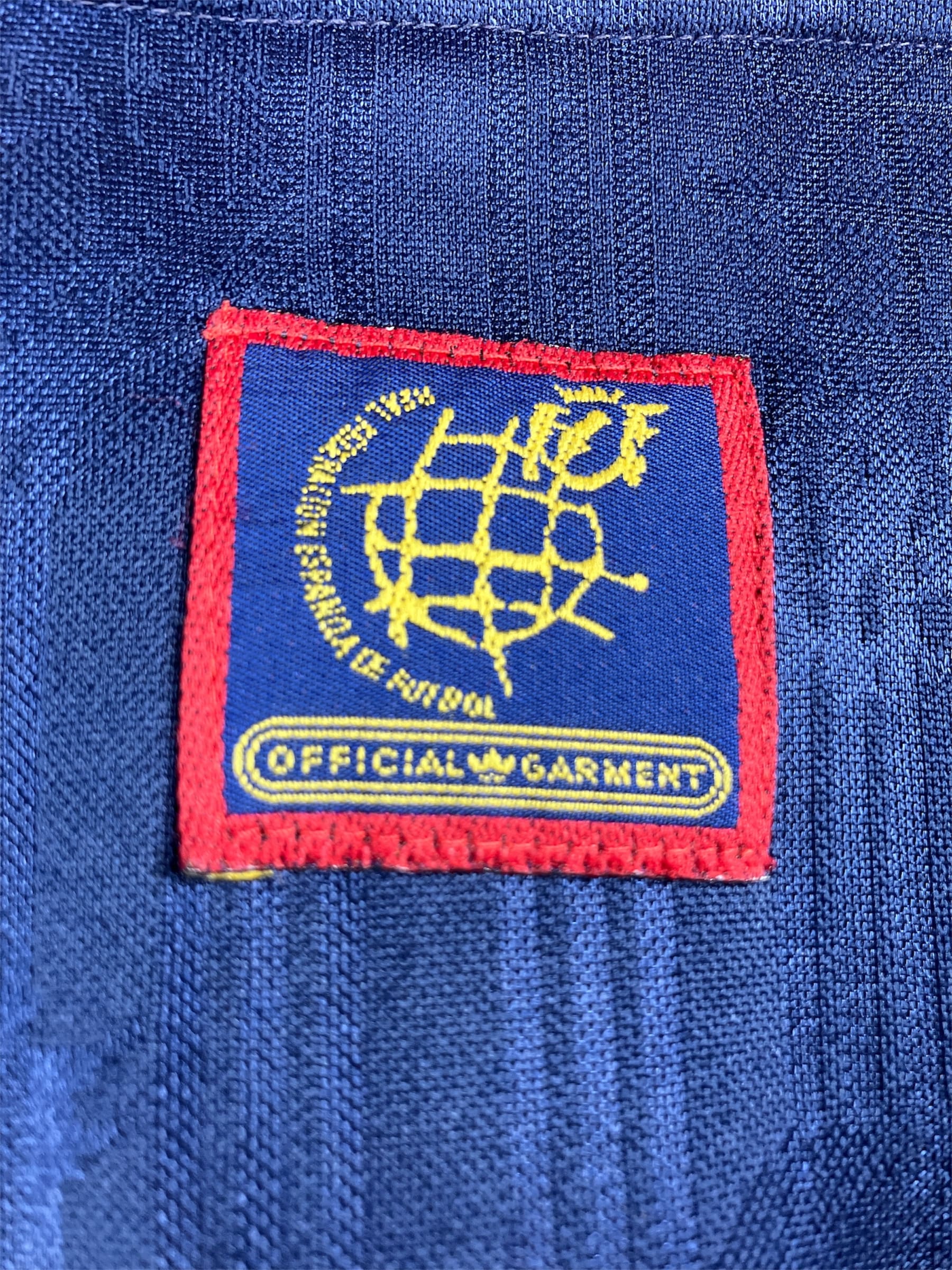 Maillot extérieur de l’Espagne utilisé lors de la saison 1996-97 et notamment durant l’Euro96 en Angleterre. Première apparition lors de Norvège-Espagne (0-0, amical) le 24/04/1996 à Oslo.