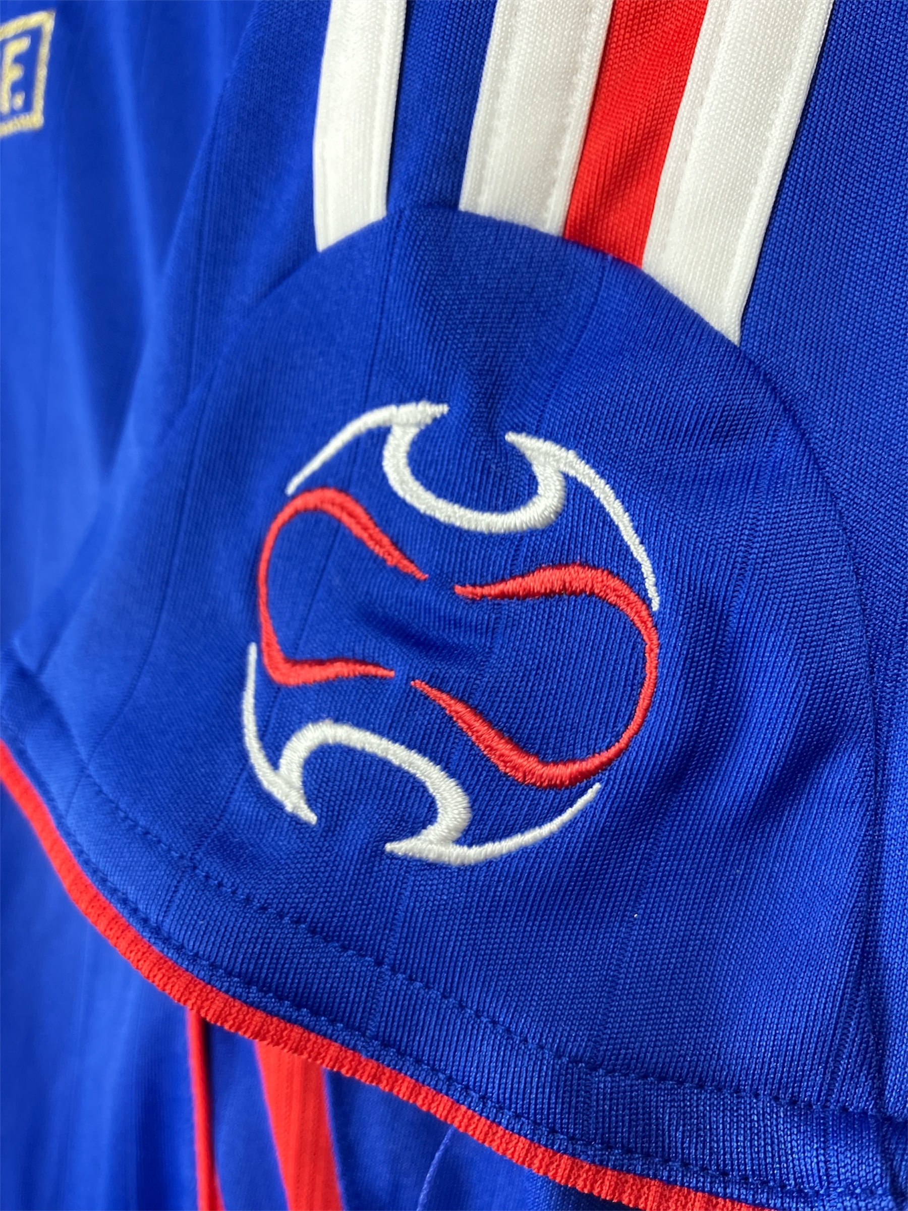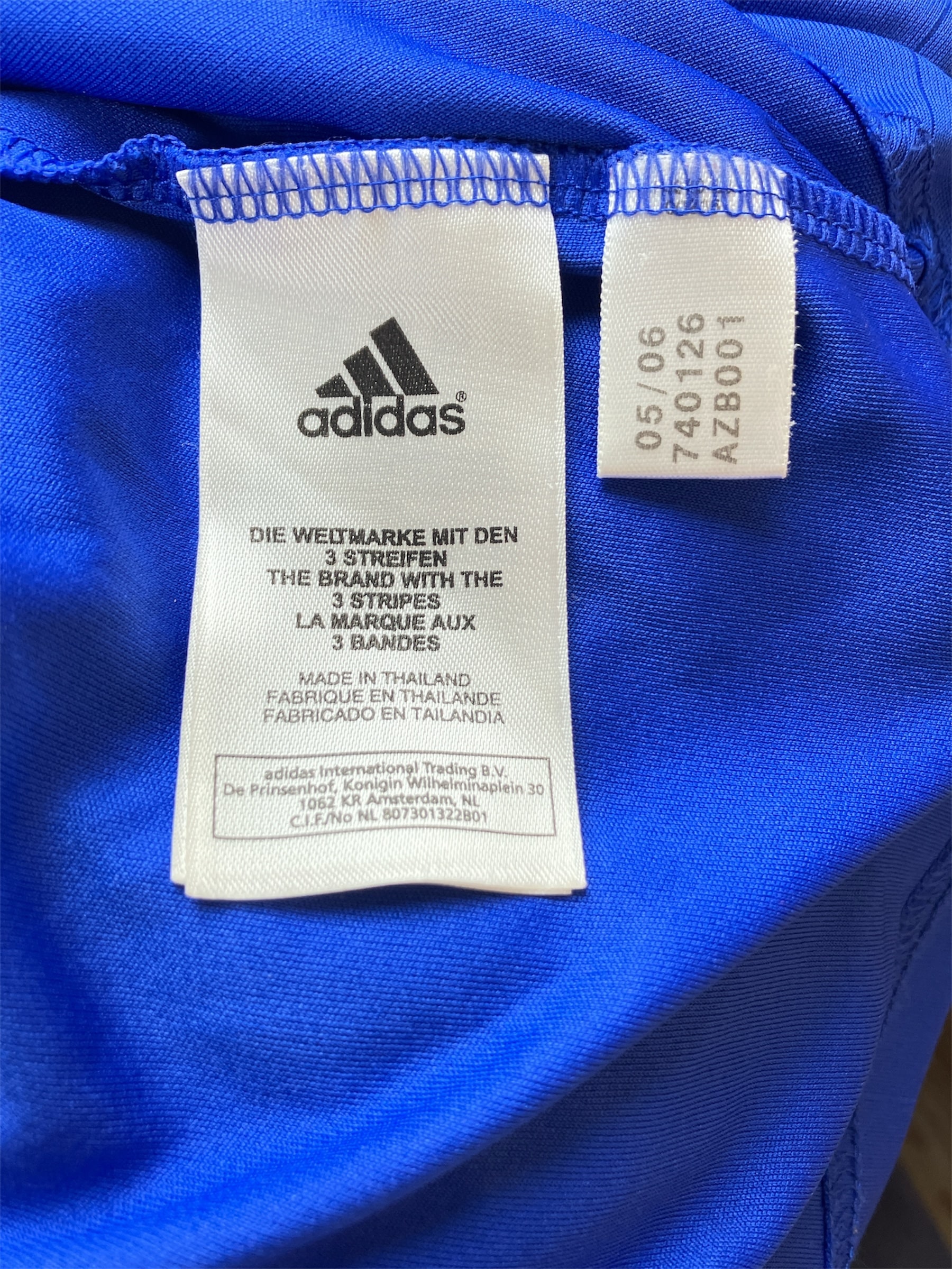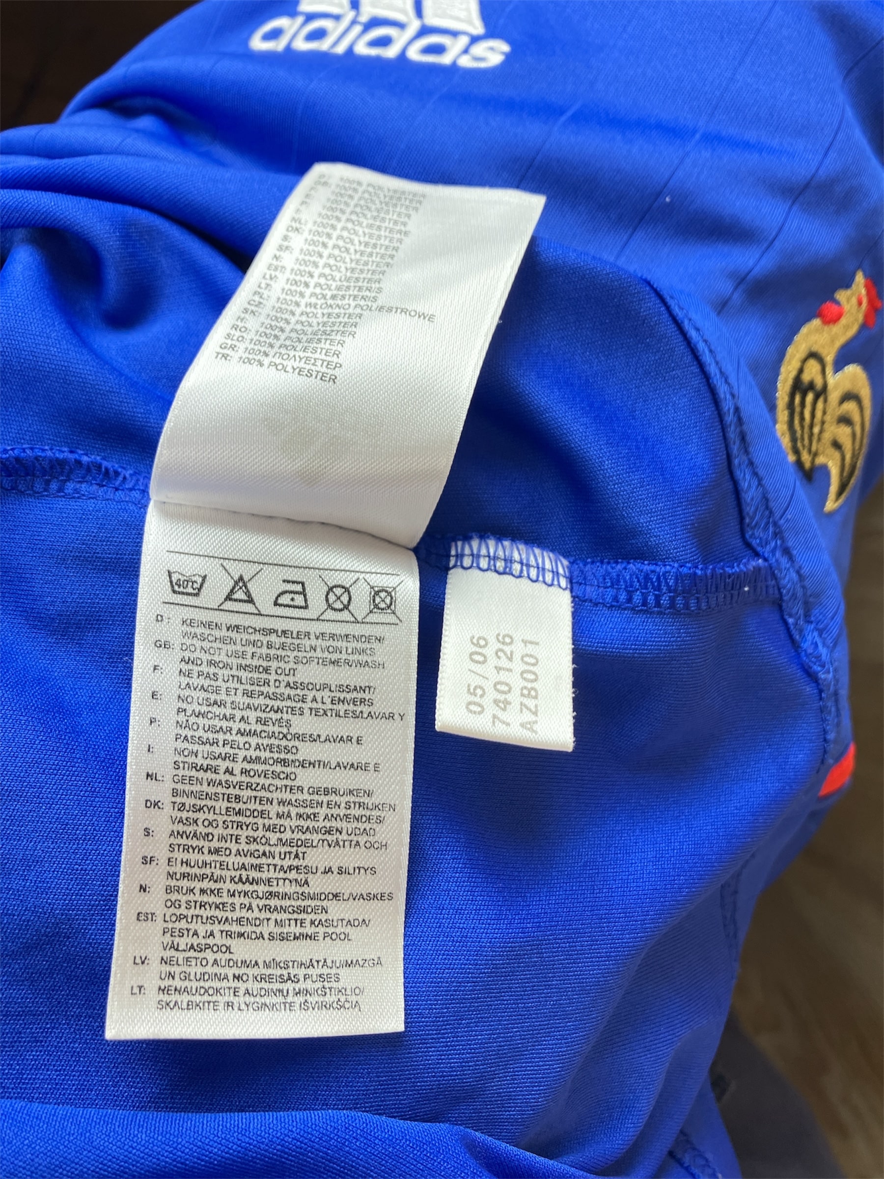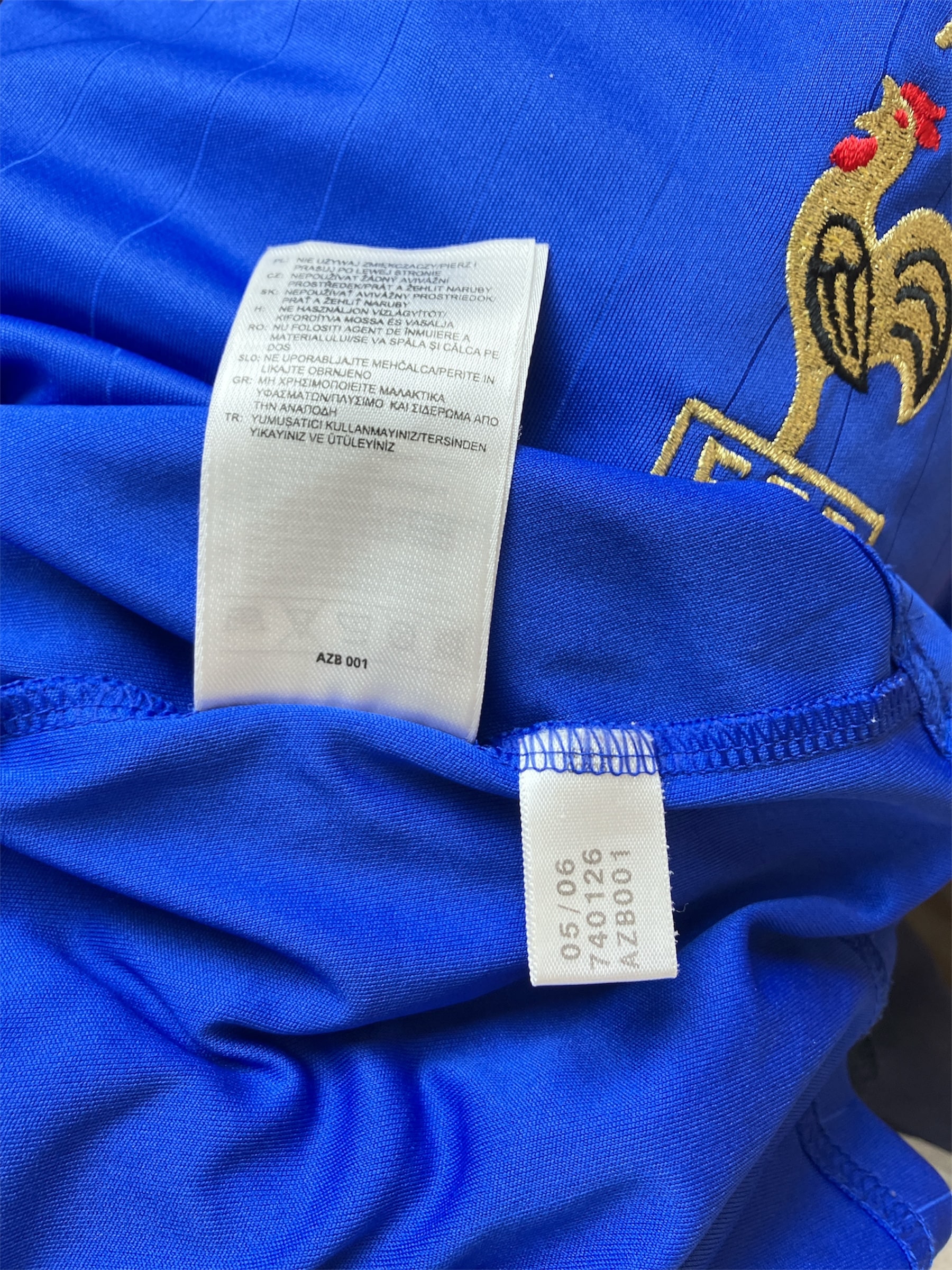 Maillot domicile adidas de la France utilisé lors des saisons 2005-06 et 2006-07, notamment durant la Coupe du monde 2006 en Allemagne. Première apparition lors de France-Allemagne (0-0, amical) le 12/11/2005 à Saint-Denis.