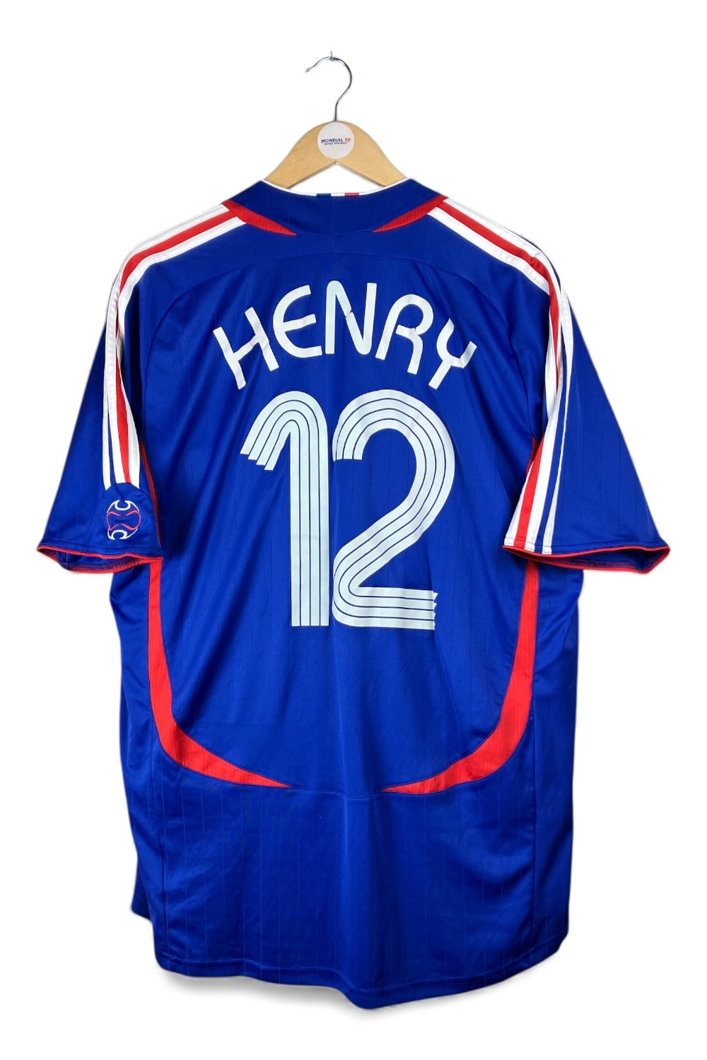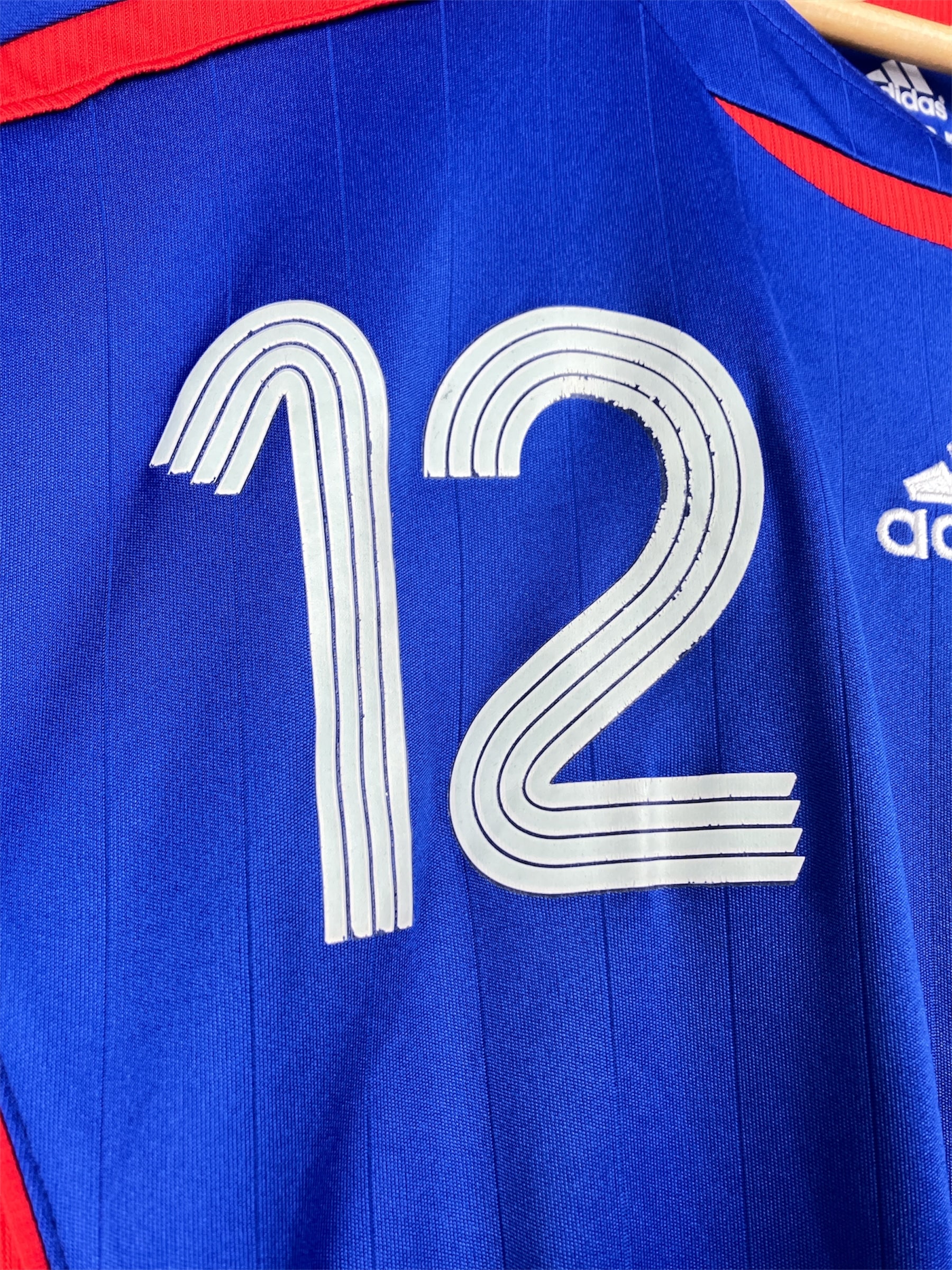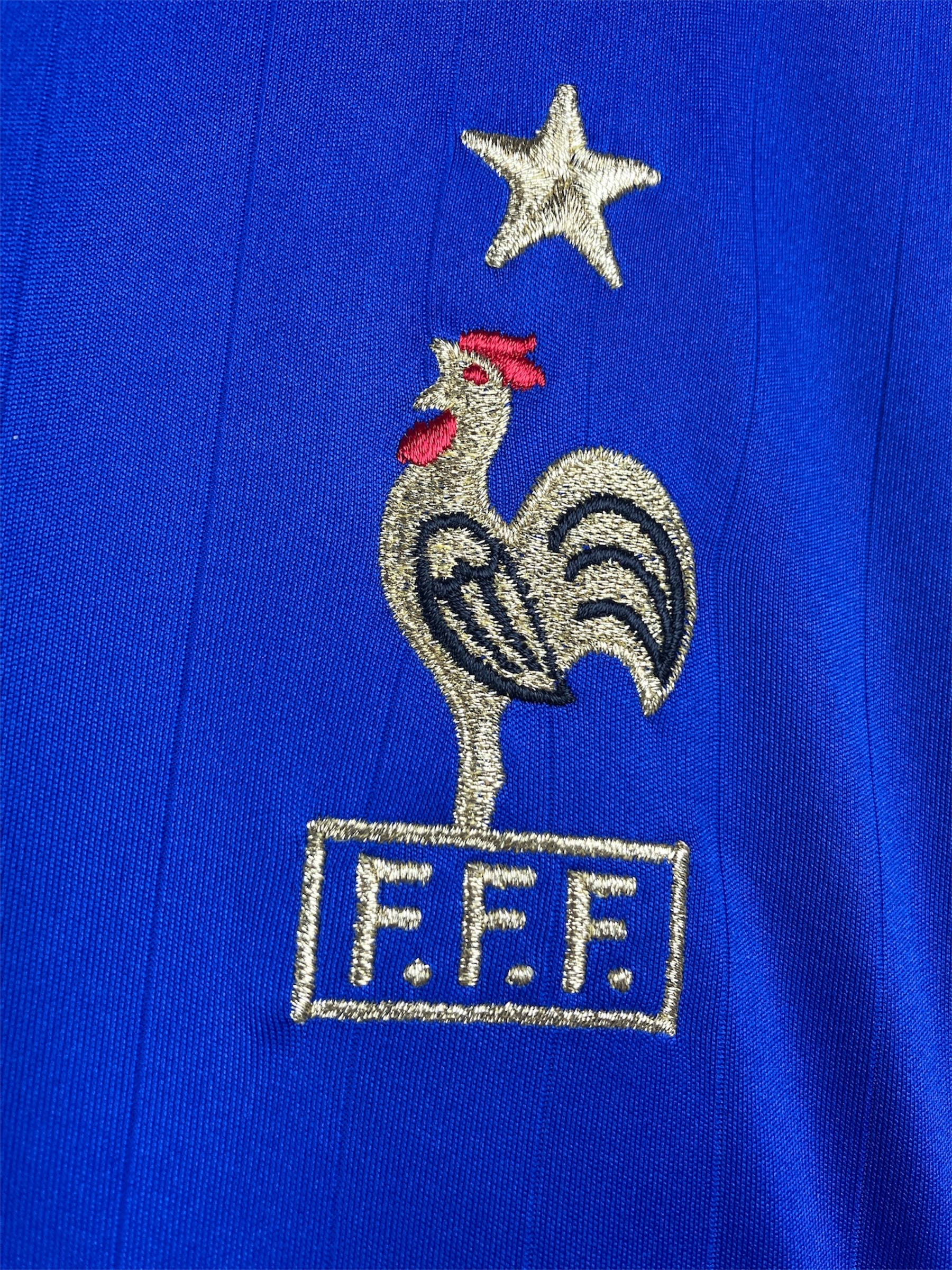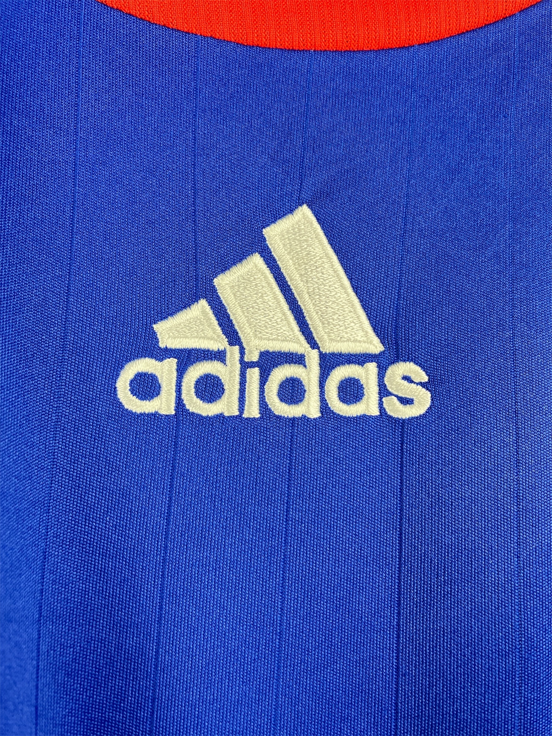 Maillot domicile adidas de la France utilisé lors des saisons 2005-06 et 2006-07, notamment durant la Coupe du monde 2006 en Allemagne. Première apparition lors de France-Allemagne (0-0, amical) le 12/11/2005 à Saint-Denis.